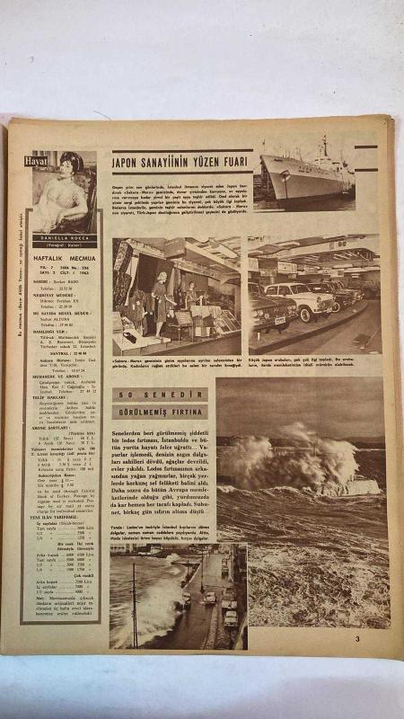 HAYAT HAFTALIK HABER MECMUA, DERGİSİ - ORTA SAYFA POSTER : KÖPRÜ VAN GOGH - SIRA NO: 326 TARİH: 3 OCAK 1963 TÜRKİYE ANSİKLOPEDİSİ - ANKARA VİLAYETİ - EDİRNE VİLAYETİ - JAPON SANAYİİNİN YÜZEN FUARI - DANIELLA ROCCA - HAFTALIK MECMUA - NESRİYAT MÜDÜRÜ HİKMET FERİDUN ES - MESUL MÜDÜR SADUN ALTUNA - 50 SENEDİR GÖRÜLMEMİŞ FIRTINA - HALI KAZANAN BİR OKUYUCUMUZ BAYAN ZEHRA ERSARAÇ - BAŞARILI BİR OKUL PİYESİ - FATMA RAMAZANOĞLU - ANANEVİ AŞURE GÜNÜ - BURSA LİSESİ MEZUNLARI TOPLANDI - İSTANBUL VALİSİ NİYAZİ AKI - İŞSİZ ADAMIN ŞEYTANI - AMERİKALI DOKTORLAR - FETHİ ÇELİKBAŞ - MEHMET İZMEN - REŞİDE BAYAR VEFAT ETTİ - CELAL BAYAR - REFET BEY - REFİL BAYAR - BEBEK SERGİSİ - İLK TÜRK LASTİĞİ - DÜNYACA MEŞHUR TÜRK KANARYACILIĞI YENİDEN CANLANIYOR - SERİNOFİL DERNEĞİ - DÜLHAMİT DEVRİNDE HAREM HAYATI - SADİYE OSMANOĞLU - SARAYDA SOFRA - HAREMDE YEMEK - ARABA GEZİNTİLERİ - BİR SARAY KIYAFET - MASRAF DURUMU - GEREKLİ FORMALİTELER - AMERİKA BİRLEŞİK DEVLETLERİ ELÇİLİĞİ - AME - EKSİKSİZ TAM TAKIM 48 SAYFA adlı eser, Kitap > Süreli Yayınlar > Dergiler > Magazin, Moda kategorisinde İkinci El olarak satıştadır.