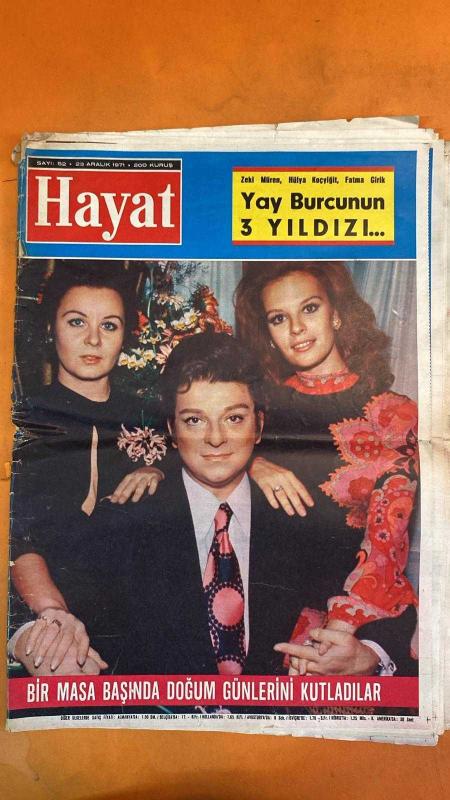 HAYAT HAFTALIK HABER MECMUA, DERGİSİ- ORTA SAYFA POSTER: MAVNALAR TABLOSU - SAYI: 52 SIRA NO: 794 TARİH: 23 ARALIK 1971 ZEKİ MÜREN - HÜLYA KOÇYİĞİT - FATMA GİRİK - GÜLŞAH KOÇYİĞİT - BERKER İNANOĞLU - SELİM - NEVZAT OKÇUGİL - PATRICIA NIXON - RICHARD NIXON - NESİBE BATIYOK - SEDAT DİZİCİ - KORAY GÜNEY YAY BURCUNUN 3 YILDIZI - ZEKİ MÜREN’E KARPUZLU DOĞUM GÜNÜ SÜRPRİZİ - DOĞUM GÜNÜNÜ BİRLİKTE KUTLAYAN SANATÇILAR - NİXON’LARIN BEYAZ SARAY GÜNLÜĞÜ - PATRICIA NIXON’UN HAYATI - YILIN EN GÜZEL FOTOĞRAFI YARIŞMASI - NESİBE BATIYOK’UN BAĞIŞLARI - MALTEPE’DE CAMİ VE DİSPANSER - FERHATPAŞA ÇİFTLİĞİ BAĞIŞI - KOLERA SONRASI SAĞMALCILAR VE ESENLER’DE HAYIR HİZMETLERİ - İCLAL AR - AYŞE SARIALP - LEYLA NİSLİ - EDİBE KIRDAR - MÜCAP OFLUOĞLU - ŞİRİN DEVRİM - NİLÜFER SARPER - HANDAN ÖNİŞ - TÜRKAN ECZACIBAŞI - BELMA HAMAMCIOĞLU - ASUDE ZEYBEKOĞLU - FERİHA MİREL - SUAT AYSAN - BULUT - BERNA TOKAR - GÜLSEN ERAT - ATİYE DEMİRCİ - AYŞE BEYAZIT - BELMA VEZİROĞLU - ADLA CERRAHOĞL - EKSİKSİZ TAM TAKIM 48 SAYFA, ŞEVKET RADO tarafından kaleme alınmıştır. Eser UĞUR GÜNERİ editörlüğünde hazırlanmıştır. Kitap Doğan Kardeş yayınları tarafından yayınlanmıştır. 48 sayfadır. HAYAT HAFTALIK HABER MECMUA, DERGİSİ- ORTA SAYFA POSTER: MAVNALAR TABLOSU - SAYI: 52 SIRA NO: 794 TARİH: 23 ARALIK 1971 ZEKİ MÜREN - HÜLYA KOÇYİĞİT - FATMA GİRİK - GÜLŞAH KOÇYİĞİT - BERKER İNANOĞLU - SELİM - NEVZAT OKÇUGİL - PATRICIA NIXON - RICHARD NIXON - NESİBE BATIYOK - SEDAT DİZİCİ - KORAY GÜNEY YAY BURCUNUN 3 YILDIZI - ZEKİ MÜREN’E KARPUZLU DOĞUM GÜNÜ SÜRPRİZİ - DOĞUM GÜNÜNÜ BİRLİKTE KUTLAYAN SANATÇILAR - NİXON’LARIN BEYAZ SARAY GÜNLÜĞÜ - PATRICIA NIXON’UN HAYATI - YILIN EN GÜZEL FOTOĞRAFI YARIŞMASI - NESİBE BATIYOK’UN BAĞIŞLARI - MALTEPE’DE CAMİ VE DİSPANSER - FERHATPAŞA ÇİFTLİĞİ BAĞIŞI - KOLERA SONRASI SAĞMALCILAR VE ESENLER’DE HAYIR HİZMETLERİ - İCLAL AR - AYŞE SARIALP - LEYLA NİSLİ - EDİBE KIRDAR - MÜCAP OFLUOĞLU - ŞİRİN DEVRİM - NİLÜFER SARPER - HANDAN ÖNİŞ - TÜRKAN ECZACIBAŞI - BELMA HAMAMCIOĞLU - ASUDE ZEYBEKOĞLU - FERİHA MİREL - SUAT AYSAN - BULUT - BERNA TOKAR - GÜLSEN ERAT - ATİYE DEMİRCİ - AYŞE BEYAZIT - BELMA VEZİROĞLU - ADLA CERRAHOĞL - EKSİKSİZ TAM TAKIM 48 SAYFA adlı eser Türkçe dilindedir.