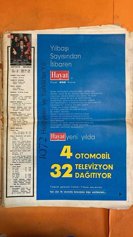 HAYAT HAFTALIK HABER MECMUA, DERGİSİ- ORTA SAYFA POSTER: MAVNALAR TABLOSU - SAYI: 52 SIRA NO: 794 TARİH: 23 ARALIK 1971 ZEKİ MÜREN - HÜLYA KOÇYİĞİT - FATMA GİRİK - GÜLŞAH KOÇYİĞİT - BERKER İNANOĞLU - SELİM - NEVZAT OKÇUGİL - PATRICIA NIXON - RICHARD NIXON - NESİBE BATIYOK - SEDAT DİZİCİ - KORAY GÜNEY YAY BURCUNUN 3 YILDIZI - ZEKİ MÜREN’E KARPUZLU DOĞUM GÜNÜ SÜRPRİZİ - DOĞUM GÜNÜNÜ BİRLİKTE KUTLAYAN SANATÇILAR - NİXON’LARIN BEYAZ SARAY GÜNLÜĞÜ - PATRICIA NIXON’UN HAYATI - YILIN EN GÜZEL FOTOĞRAFI YARIŞMASI - NESİBE BATIYOK’UN BAĞIŞLARI - MALTEPE’DE CAMİ VE DİSPANSER - FERHATPAŞA ÇİFTLİĞİ BAĞIŞI - KOLERA SONRASI SAĞMALCILAR VE ESENLER’DE HAYIR HİZMETLERİ - İCLAL AR - AYŞE SARIALP - LEYLA NİSLİ - EDİBE KIRDAR - MÜCAP OFLUOĞLU - ŞİRİN DEVRİM - NİLÜFER SARPER - HANDAN ÖNİŞ - TÜRKAN ECZACIBAŞI - BELMA HAMAMCIOĞLU - ASUDE ZEYBEKOĞLU - FERİHA MİREL - SUAT AYSAN - BULUT - BERNA TOKAR - GÜLSEN ERAT - ATİYE DEMİRCİ - AYŞE BEYAZIT - BELMA VEZİROĞLU - ADLA CERRAHOĞL - EKSİKSİZ TAM TAKIM 48 SAYFA adlı eser, Kitap > Süreli Yayınlar > Dergiler > Magazin, Moda kategorisinde İkinci El olarak satıştadır.