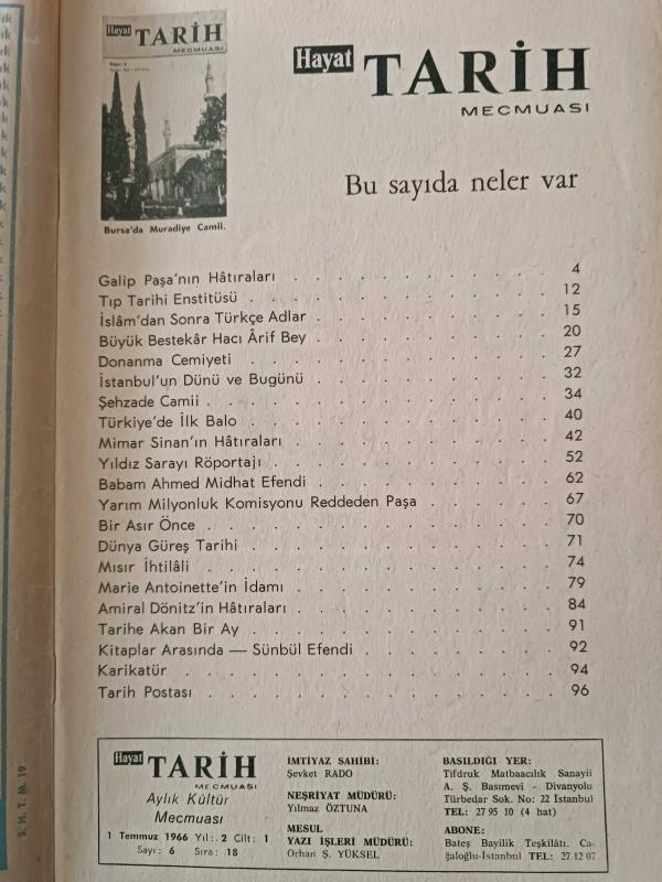 HAYAT TARİH MECMUASI SAYI 6 1966 Türkiye'de İlk Balo, Dünya Güreş Tarihi, Büyük Bestekar Hacı Arif Bey vd. adlı eser, Kitap > Süreli Yayınlar > Dergiler > Tarih kategorisinde İkinci El olarak satıştadır.