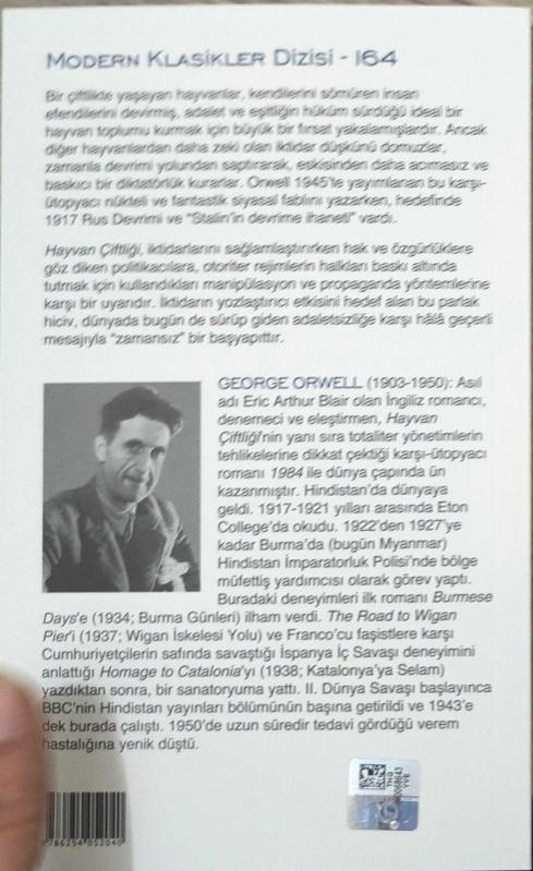 HAYVAN ÇİFTLİĞİ, GEORGE ORWELL tarafından kaleme alınmıştır. Kitap 2025 yılında TÜRKİYE İŞ BANKASI KÜLTÜR YAYINLARI tarafından yayınlanmıştır. 100 sayfadır. HAYVAN ÇİFTLİĞİ adlı eser Türkçe dilindedir.