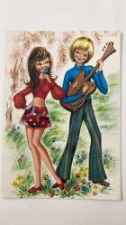 HEDİYE KARTPOSTALI - 15 x 10 cm EBADINDA - ARKASI YAZILI - GİTAR ÇALAN SARIŞIN ÇOCUK VE ONA EŞLİK EDEN KIRMIZI ÜSTLÜ KIZ, en son 8 ay önce güncellenmiştir.