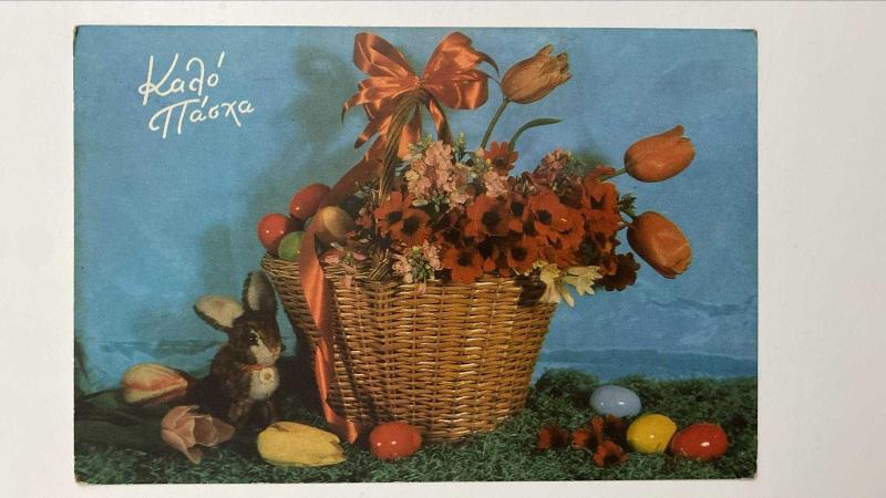 HEDİYE KARTPOSTALI - 15 x 10 cm EBADINDA - ARKASI YAZILI - YEŞİLLİKLERİN ARASINDA RENKLİ PASKALYA YUMURTALARI VE ÇİÇEKLERLE SÜSLÜ SEPET, 8 ay önce satışa sunulmuştur.