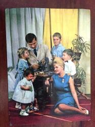 HEDİYE KARTPOSTALI, 60'LI YILLARDAN BİR AİLE FOTOĞRAFI, ŞIK GİYİMLİ ANNE VE BABA VE 4 TANE SEVİMLİ ÇOCUK, ARKASI YAZILI, RENKLİ, 15 X 11 CM EBADINDA - 1940'LAR, 1950'LER, 1960'LAR, 1970'LER 1980'LER, en son 8 ay önce güncellenmiştir.