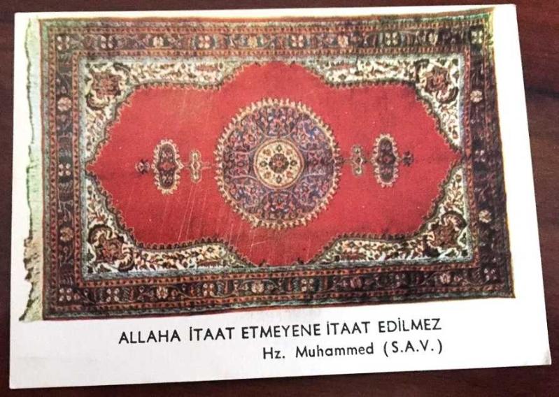 HEDİYE KARTPOSTALI, ALLAH'A İTAAT ETMEYENE İTAAT EDİLMEZ YAZILI NOTLU OSMANLI DÖNEMİ TÜRK HALI & KİLİM DESENLERİ, ARKASI YAZILMAMIŞ, RENKLİ, 15 X 9 CM EBADINDA - 1940'LAR, 1950'LER, 1960'LAR, 1970'LER 1980'LER, en son 8 ay önce güncellenmiştir.