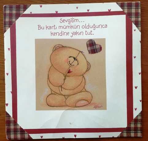 HEDİYE KARTPOSTALI, ÇİFT YAPRAK, BÜYÜK BOY, ELİNDE ÇİÇEK TUTAN VE BAŞINDA KALP OLAN AYICIK ÇİZİMİ, İÇİ YAZILI, RENKLİ, 16 X 16 CM EBADINDA - 1940'LAR, 1950'LER, 1960'LAR, 1970'LER 1980'LER, en son 8 ay önce güncellenmiştir.