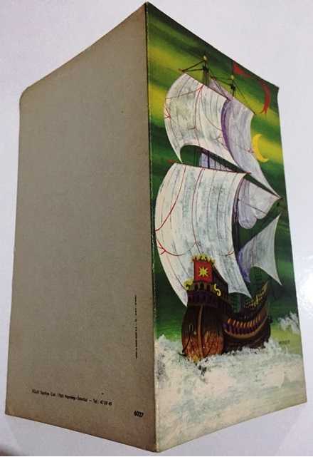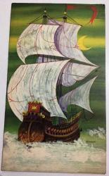 HEDİYE KARTPOSTALI, ÇİFT YAPRAK, BÜYÜK BOY, YELKENLİ GEMİ ÇİZİMİ (TEPESİNDE HİLAL AY VE DENİZDE DALGALAR), ARKASI YAZILMAMIŞ, RENKLİ, 11,5 X 20 CM EBADINDA - 1940'LAR, 1950'LER, 1960'LAR, 1970'LER 1980'LER, 1 yıl önce satışa sunulmuştur.
