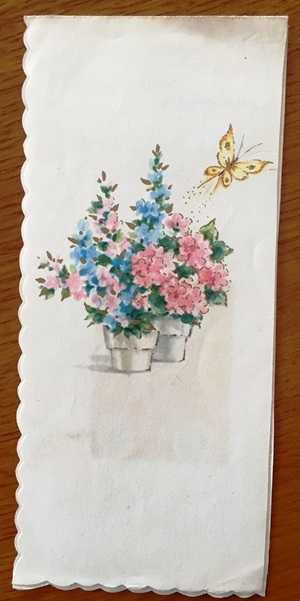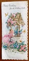 HEDİYE KARTPOSTALI, ÇİFT YAPRAK, İNGİLİZCE YAZILI DOĞUM GÜNÜ KUTLAMA KARTI, SU KUYUSU YANINDA OTURAN KIZ VE ÇİÇEKLER ÇİZİMİ, İÇİ YAZILI VE HOLLYWOOD AKTÖRLERİNDEN BİRİNİN FOTOĞRAFI YAPIŞTIRILMIŞ, RENKLİ, 8 X 16 CM EBADINDA - 1940'LAR, 1950'LER, 1960'LAR, 1970'LER 1980'LER, en son 8 ay önce güncellenmiştir.