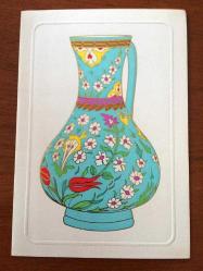 HEDİYE KARTPOSTALI, ÇİFT YAPRAK, TURKUAZ MAVİSİ BİR TESTİ VE ÜZERİNDEKİ PAPATYA İLE LALE ÇİÇEKLERİ ÇİZİMİ, İÇİ YAZILI, RENKLİ 17 X 12 CM EBADINDA, en son 8 ay önce güncellenmiştir.