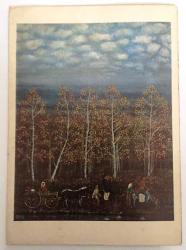 HEDİYE KARTPOSTALI, ÇİFT YAPRAK, YALÇIN GÖKÇEBAĞ TARAFINDAN RESMEDİLMİŞ AĞAÇLI YOLDA İLERLEYEN AT ARABALI VE EŞEK SÜREN İNSANLAR, ARKASI YAZILMAMIŞ, RENKLİ, 12 X 17 CM EBADINDA - 1940'LAR, 1950'LER, 1960'LAR, 1970'LER 1980'LER, en son 8 ay önce güncellenmiştir.
