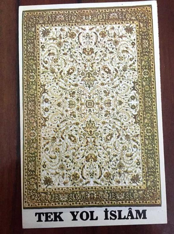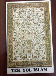 HEDİYE KARTPOSTALI, FISTIK YEŞİLİ TONLARINDA TONLARONDA OSMANLI DÖNEMİ TÜRK HALI KİLİM DESENLERİ MOTİFİ, ''TEK YOL İSLAM'' YAZILI OLDUĞU BİR NOT İLE, ARKASI YAZILMAMIŞ, RENKLİ, 10 X 14 CM EBADINDA, en son 1 yıl önce güncellenmiştir.