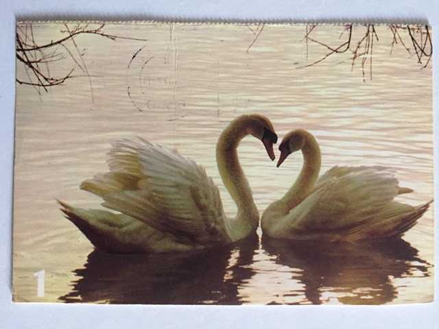 HEDİYE KARTPOSTALI, GÖLDE YÜZEN BİR ÇİFT KUĞU, MASUMİYETİN VE DUYGUSALLIĞIN SİMGESİ KUŞLAR, ARKASI YAZILI VE ÇİFT PULLU (1978 YILINDA YAZILMIŞ BİR MEKTUP), RENKLİ, 10 X 15 CM EBADINDA - 1940'LAR, 1950'LER, 1960'LAR, 1970'LER 1980'LER, en son 2 yıl önce güncellenmiştir.