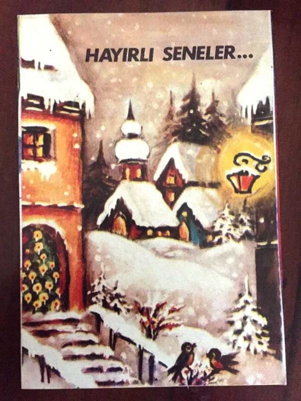 HEDİYE KARTPOSTALI, KAR MANZARASI ÇİZİMİ VE ''HAYIRLI SENELER...' YAZILI NOT, ARKASI YAZILMAMIŞ, RENKLİ, 10 X 15 CM EBADINDA - 1940'LAR, 1950'LER, 1960'LAR, 1970'LER 1980'LER, en son 8 ay önce güncellenmiştir.