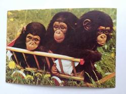 HEDİYE KARTPOSTALI, ÜÇ SEVİMLİ ŞEMPANZE YAVRUSU, HAYVANLAR ALEMİ, ARKASI YAZILMAMIŞ, RENKLİ, 15 X 10 CM EBADINDA - 1940'LAR, 1950'LER, 1960'LAR, 1970'LER 1980'LER, 1 yıl önce satışa sunulmuştur.