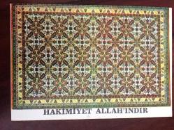HEDİYE KARTPOSTALI, YEŞİL TONLARINDA OSMANLI DÖNEMİ TÜRK HALI KİLİM DESENLERİ MOTİFİ ''HAKİMİYET ALLAH'INDIR'' NOTLU, ARKASI YAZILMAMIŞ, RENKLİ, 10 X 14 CM EBADINDA, en son 1 yıl önce güncellenmiştir.