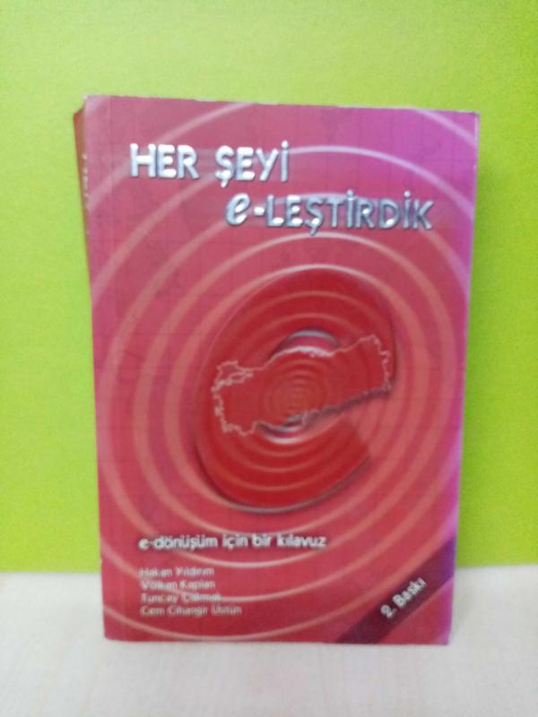 HER ŞEYİ e-LEŞTİRDİK(e-dönüşüm için bir kılavuz)-2.EL, HAKAN YILDIRIM-VOLKAN KAPLAN-TUNCAY ÇAKMAK-CEM CİHANGİR ÜSTÜN tarafından kaleme alınmıştır. Kitap 2003 yılında MACAR YAYINCILIK tarafından yayınlanmıştır. 464 sayfadır. HER ŞEYİ e-LEŞTİRDİK(e-dönüşüm için bir kılavuz)-2.EL adlı eser Türkçe dilindedir.