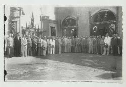 ** C.H.P. VE TÜRK BAYRAKLARIYLA SÜSLÜ FOTOĞRAF ** 17.5 x 11.5 cm.ebadında,arka yüzü yazısız, gayet iyi kndüsyonda dönem orijinal fotoğraftır... Yer ve zaman bilgisi mevcut değil.. Ancak görüntü gayet güzel...