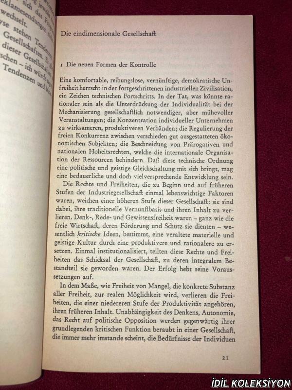 HERBERT MARCUSE / DER EİNDİMENSİONALE MENSCH - STUDİEN ZUR IDEOLOGİE DER FORTGESCHRİTTENEN INDUSTRİEGESELLSCHAFT / LUCHTERHAND LİTERATURVERLAG / ALMANCA KİTAP (BİREYSEL İNSAN - İLERİ SANAYİ TOPLUMUNUN İDEOLOJİSİ ÜZERİNE ÇALIŞMALAR) adlı eser, Kitap > Özel İlgi Alanları kategorisinde İkinci El olarak satıştadır.