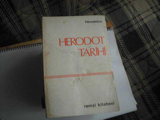 TY-561 HERODOT TARİHİ TÜRKÇEYE ÇEVİREN:MÜNTEKİM ÖKMEN YUNANCA ASLIYLA KARŞILAŞTIRAN VE SUNAN AZRA ERHAT REMZİ KİTABEVİ 1. BASKI İSTANBUL 1973 639 SAYFA NOT: KİTABA SU DEĞMİŞ, BU NEDENLE BİR KAÇ SAYFASI BİRAZ LEKELE NMİŞ, BUNUN DIŞINDA KONDİSYONU ÇOK İYİ