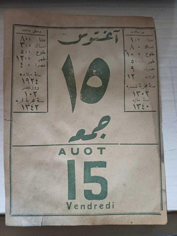 HİCRİ 1342- RUMİ 1340 -MİLADİ 1924 15 AĞUSTOS CUMA OSMANLICA TAKVİM YAPRAĞI, en son 2 ay önce güncellenmiştir.