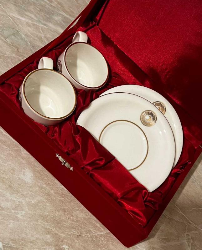 HİLAL-İ AHMER LOGOLU KIZILAY İKİLİ KAHVE FİNCANI 2 başlıklı antika/koleksiyon objesi Türkiye menşe’lidir. 2000 ve sonrası dönemine aittir.