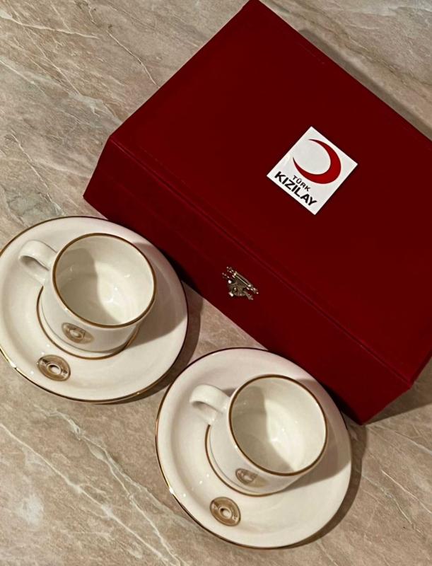 HİLAL-İ AHMER LOGOLU TÜRK KIZILAYI KAHVE FİNCANLARI. ÖZEL KUTUSUNDA VE SIFIR ÜRÜN.