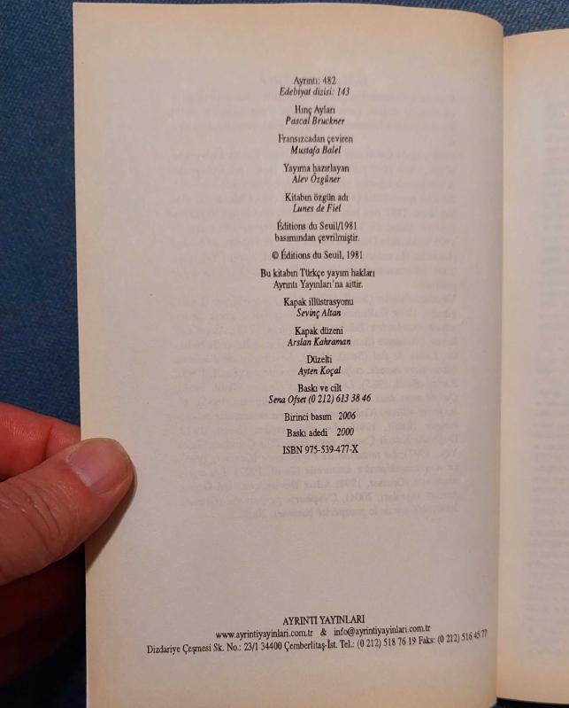 HINÇ AYLARI PASCAL BRUCKNER AYRINTI YAYINLARI 1. BASKI / 2006 224 SAYFA SIFIR KİTAP