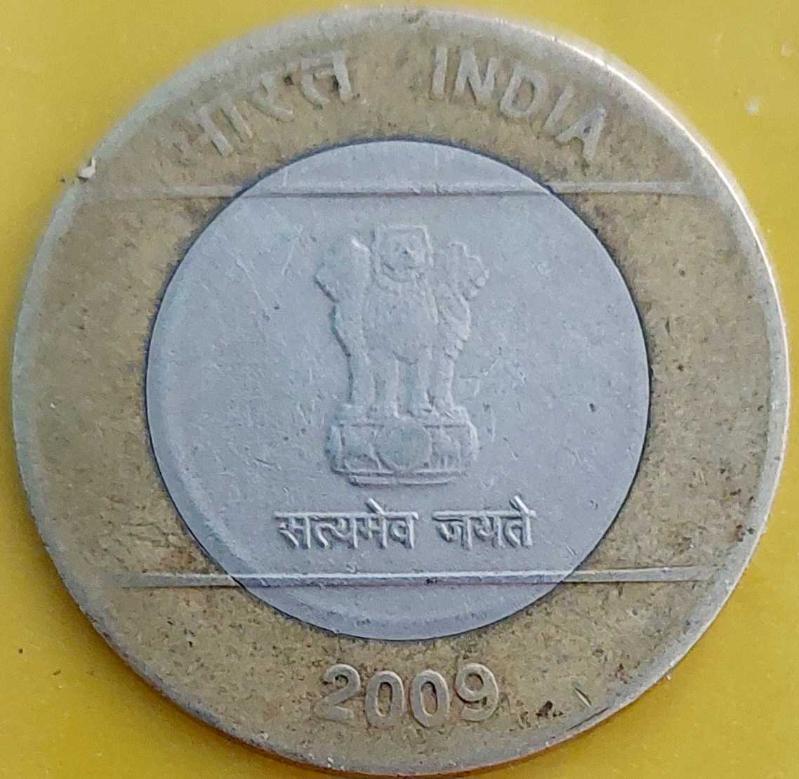 HİNDİSTAN 10 Rupi, Nadirlik : "C" Kıt Darphane işareti "°" - Noida 2009 Bimetal: çekirdek - bakır-nikel alaşımı, halka - pirinç ÇÇT FOTOĞRAFTA GÖRDÜĞÜNÜZ PARA YOLLANACAKTIR..1