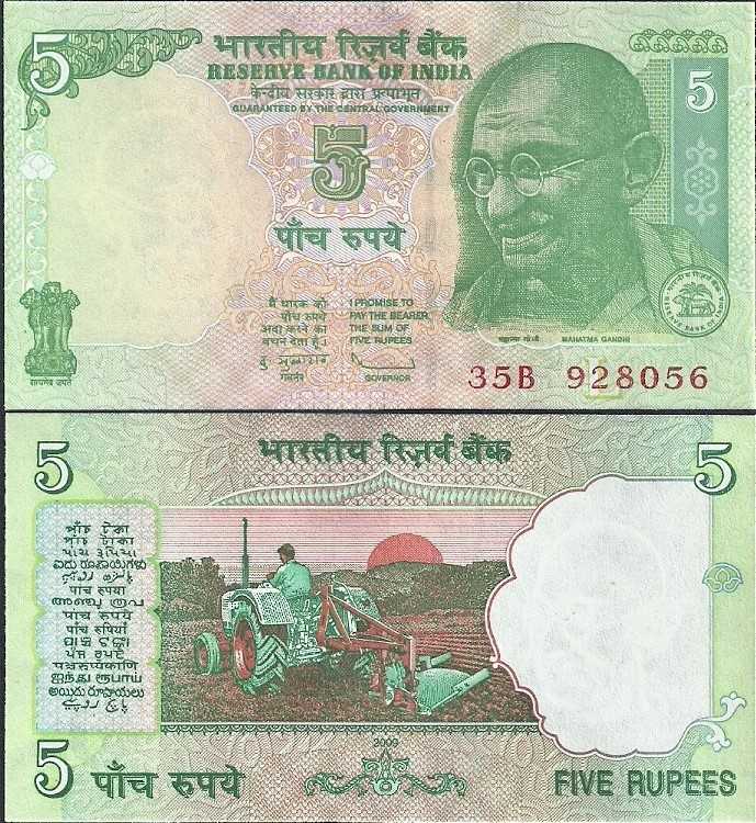 HİNDİSTAN 5 RUPİ 2009. MAHATMA GANDHİ - TARIM - TRAKTÖR TEMALI. ÇİL KONDİSYON., 7 ay önce satışa sunulmuştur.