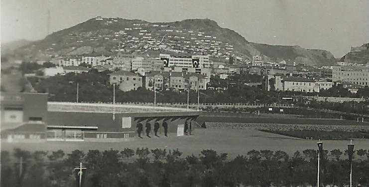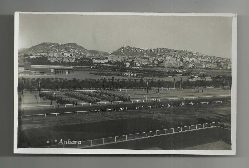 ** HİPODRAMDA GEÇİT TÖRENİ VE FONDA GENEL ANKARA MANZARASI ESKİ DÖNEM FOTOKART ** 14 x 9 cm.ebadında,arkası yazılı ve çil durumda eski Ankara fotokartıdır...