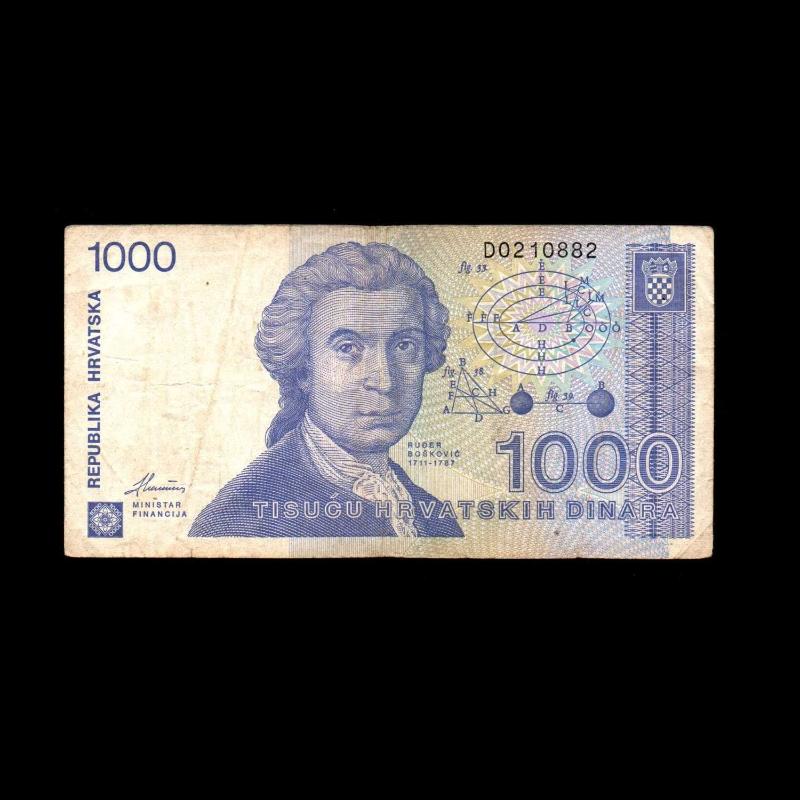 HIRVATİSTAN (1991) - 1.000 Dinar (T-ÇT 6,5/10), 5 ay önce satışa sunulmuştur.