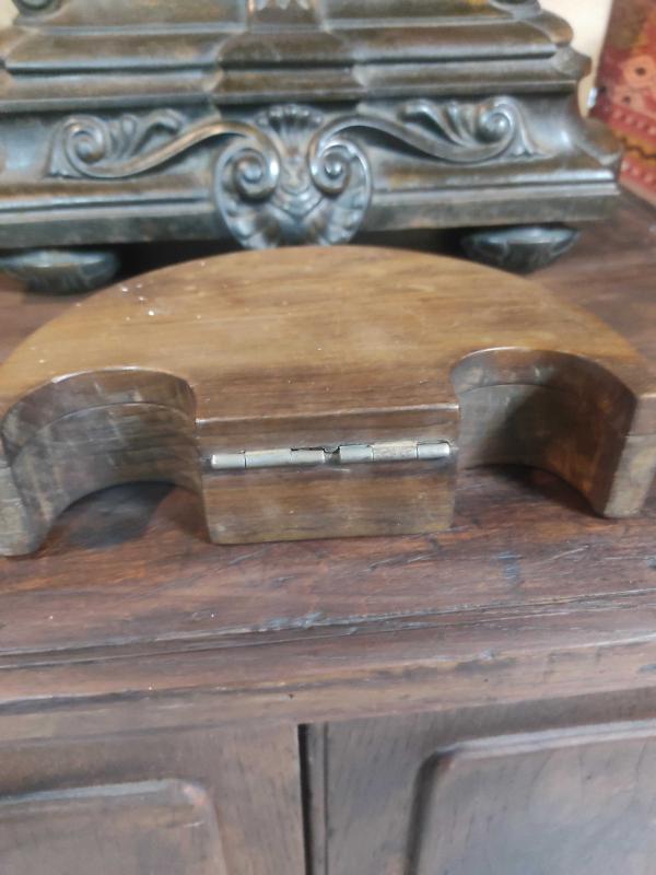 Tamamen orijinal, masif ceviz ağacından, pirinç plaka ve orjinal etiketiyle. Sanırım firmaya özel baskı olduğu için bir benzeri yok. genişlik 16cm tam açılınca 22 cm oluyor.