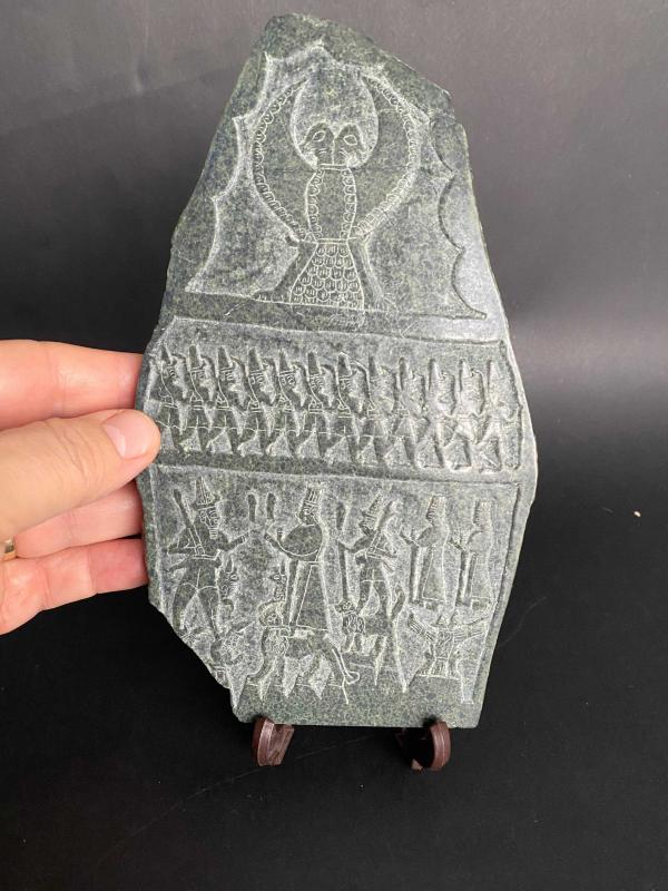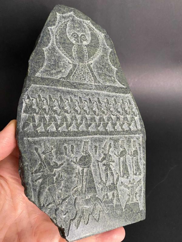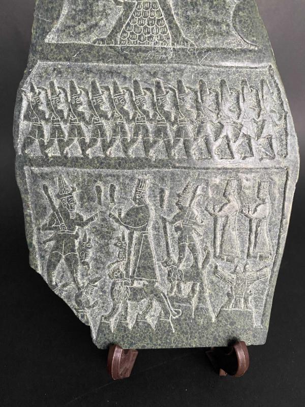Hititlerin başkenti Hattuşaş’daki (Yazılıkaya) açık hava tapınağındaki ünlü kabartmaların stilize edilmiş bir kaya rölyef. Üzerindeki figürler, Hitit mitolojisinin ve devlet yapısının en görkemli sahnelerini betimler. Dekorluk tarihi antik görünümler sevenlere. Ebat 21 x 12 cm. #antik #hitit #kaya #mitoloji