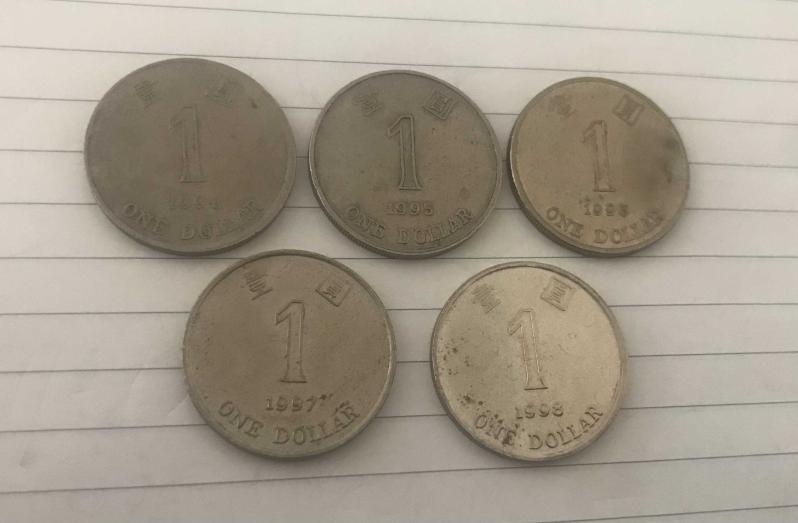 HONG KONG MADENİ PARA 1 DOLLAR / 1994-1995-1996-1997-1998 / 5 ADET