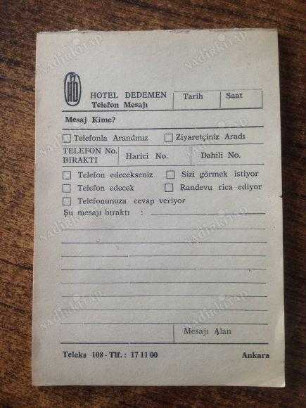 HOTEL DEDEMEN (DEDEMAN) - TELEFON MESAJI NOT KAĞIDI başlıklı ürün, Efemera, Müzik, Sinema > Belge ve Evraklar > Diğer kategorisi altında İkinci El olarak satılmaktadır.