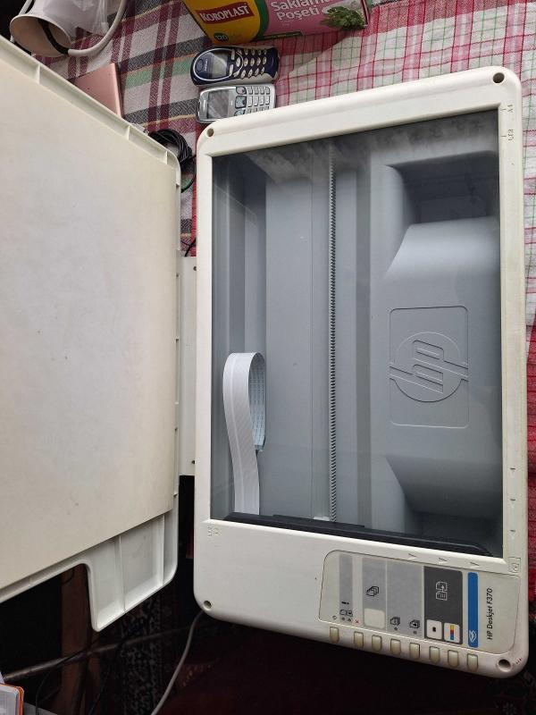 HP DEskjet F370 Yazıcı Tarayıcı - Yazıcı kısmını hiç kullanmadım, Kartuş değişmesi gerekir - Tarayıcı olarak kullandım yıllarca tarayıcı olarak kullandım. eskı fotografları tarayıp bilgisayara atmak ıcın. yazıcı kısmını calısıp calısmadıgından emın degılım.