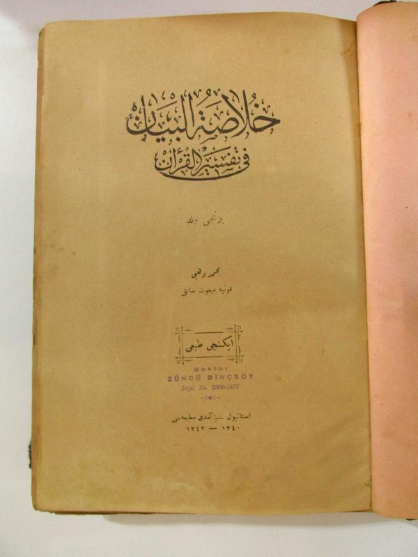 (HÜLÂSAT'ÜL BEYÂN) Fi Tefsiri'l-Kuran - 5 Cilt İçinde 15 Cilt TAKIM, Konyalı Mehmed Vehbi tarafından kaleme alınmıştır. Kitap 1342 yılında Amedi Matbaası tarafından yayınlanmıştır. (HÜLÂSAT'ÜL BEYÂN) Fi Tefsiri'l-Kuran - 5 Cilt İçinde 15 Cilt TAKIM adlı eser Osmanlıca dilindedir.