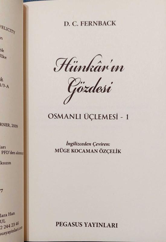 HÜNKARIN GÖZDESİ Osmanlı Üçlemesi 1, D.C. FERNBACK tarafından kaleme alınmıştır. Kitap 2011 yılında PEGASUS YAYINLARI tarafından yayınlanmıştır. Satışta olan kitap, yayınevinin 1. baskısıdır. Bu baskının çevirisi MÜGE KOCAMAN ÖZÇELİK tarafından yapılmıştır. 399 sayfadır. HÜNKARIN GÖZDESİ Osmanlı Üçlemesi 1 adlı eser Türkçe dilindedir.