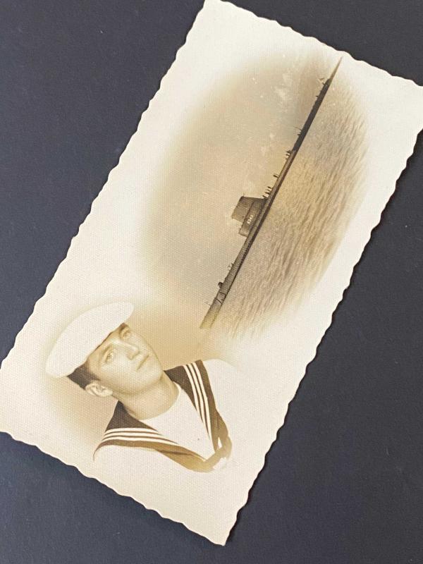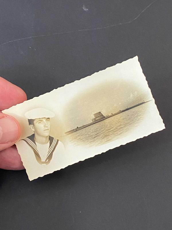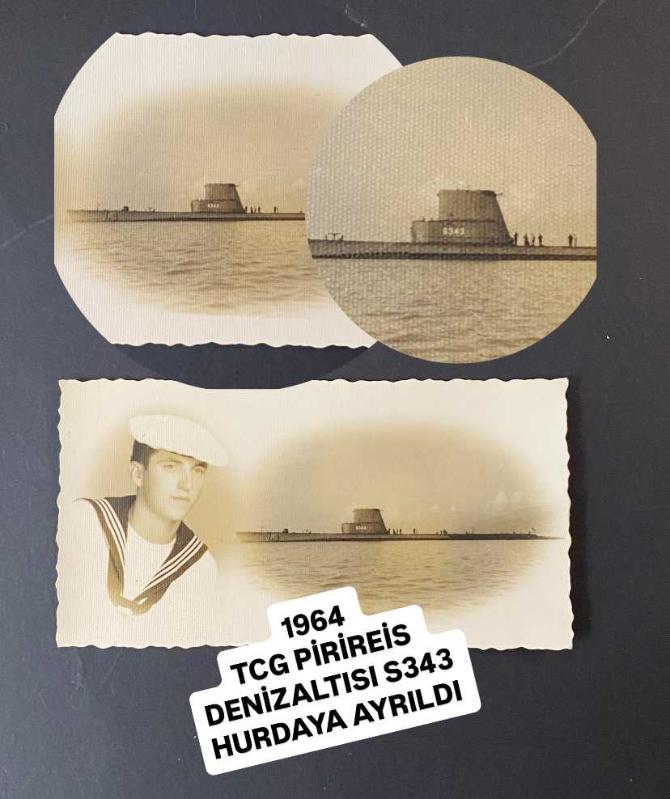 S-343 borda numarası okunan TCG Pirireis Denizaltısı ile bir bahriyelinin fotoğrafıyla kolaj yapılmış hatıra fotoğraf kartı. Arkasında 1964 tarihini okuyoruz. . Amerika'dan alınan eski adıyla USS Mapiro (SS-376) olan TCG Pirireis (S-343), 1960 yılında Türkiye'ye katıldıktan sonra tam 13 yıl boyunca kesintisiz hizmet verdi. 20 Kasım 1973 tarihinde resmen hizmet dışı bırakıldı (emekli edildi). . Gemi aslında Türkiye'ye ilk başta "kiralık" olarak verilmişti. Ancak emekli edilmesinden hemen önce, 1 Ağustos 1973'te Türkiye tarafından Amerika'dan tamamen satın alındı. . Hizmetten ayrıldıktan sonra, o dönemdeki birçok eski gemi gibi hurdaya ayrılarak söküldü. Yani ne yazık ki bir müze gemi olarak korunmadı; parçaları geri dönüşüme gönderildi. . Ebat: 8,5 x 4,5 cm .