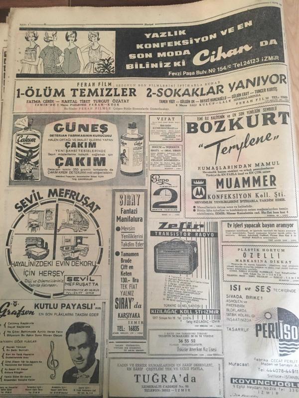 HÜRRİYET GAZETESİ 1 MAYIS 1966 YIL :19 SAYI:6465--Mehmet Turgut Küplere Bindi --Türkiye de Atom Silahlarının Tetiği Elimizde ---10 Kişinin tecavüz ettiği kadını Konyalılar buket vererek uğurladılar ---Karadeniz de Rusların 95 Bin Tonajlık Deniz Kuvveti Var --Erkek delisi genç kız Atlantiğin ortasında meydana çıkarıldı --Bıçaklanan genç kanı aka aka kendini vuranı kovaladı ---Azılı hırsız ,bir komiser iki polisin arasından sıyrılıp kaçtı ---Çingene kızını öpen arabacı 3 ay ceza yedi ---Kıskanç bir koca karısı ile aşığının kafalarını kesip komiserin masasına koydu ---Ferah Film : 1-Ölüm Temizler ,2-Sokaklar Yanıyor --Fenerbahçe -Beşiktaş --A.Gücü :6 İzm.Spor :1---Vefa 2-1 galip --Beykoz :1 Feriköy :1--PTT :3 Altay :0--DDY de Yüksek Dereceli 2 Memur Görevden Alındı --Lefkoşa da Rum Kesiminde Bir Bomba Daha Patlatıldı --3 Akraba genç hasımlarını öldürdü -- Yıpranma, sararmalar, kupon kesiği ve yırtılmalar zamana bağlı olarak görülebilir.