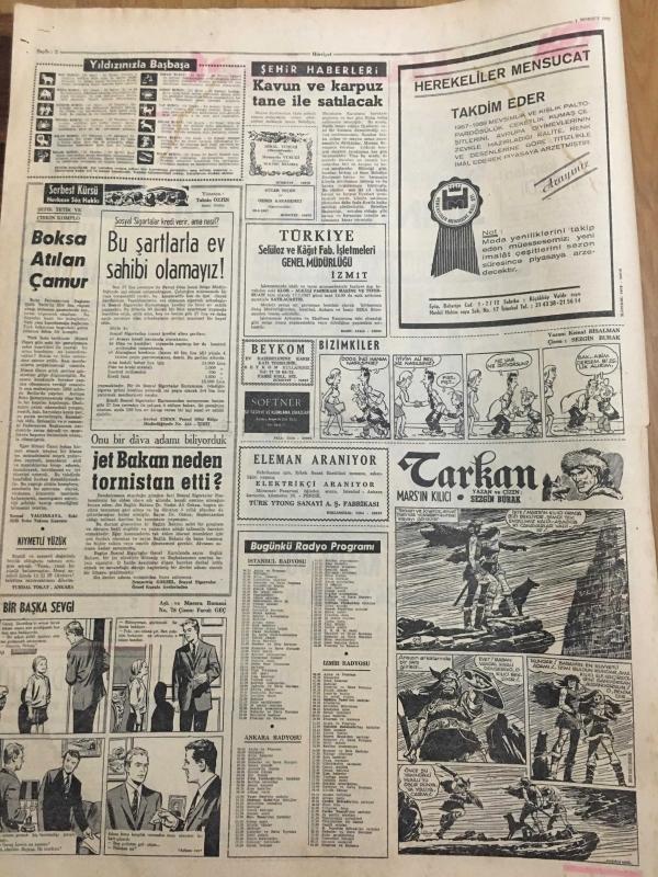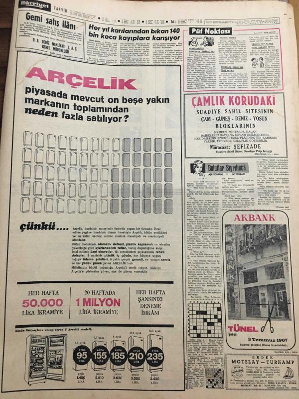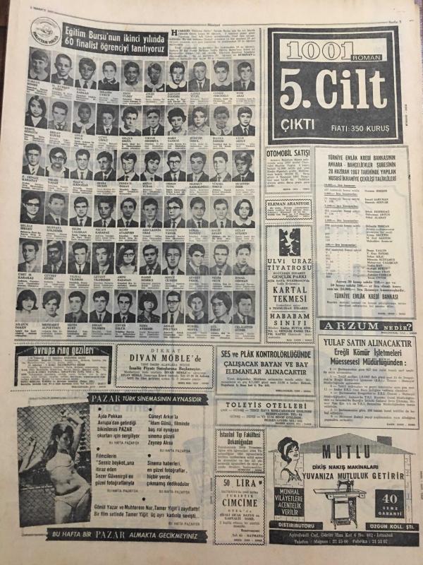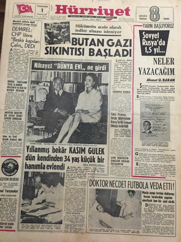 HÜRRİYET GAZETESİ 1 TEMMUZ 1967 YIL :20 SAYI :6886--Demirel :CHP lilere başka kapıları çalın dedi --Bütan Gazı sıkıntısı başladı --Amerikan uçakları bir Sovyet Ticaret Gemisini Bombaladı --Yıllanmış bekar Kasım Gülek dün kendinden 34 yaş küçük bir hanımla evlendi --Türk-Fransız Ortak Bildirisinde Kıbrıs ta iki cemaat olduğu belirtildi ---Doktor Necdet Futbola veda etti ---Kavun ve karpuz tane ile satılacak --Fevzi nin satış fiyatı 250 bin lira ----Celal Atik şampiyonluk bekliyor ---Galatasaray Talat 'ı 400 bin liraya satışa çıkardı ---Türkiye 1. ligi 16 takımla oynayacak ---Turgay ın jübile maçı programı belli oldu ---Yelken maratonu yarın başlıyor ---Her yıl karılarından bıkan 140 bin koca kayıplara karışıyor ---Londra da dertli bir Türk ---Olimpiyat şampiyonu manastıra kapanıp rahibe oldu --Tek kişilik minik helikopter bin 500 metreye çıkabilir ---Azraili atlatan paten şampiyonu unvanını kaybetti --Gümrük tarifelerini yüzde 35 indiren anlaşmayı 45 ülke ile beraber imzaladık, SEDAT SİMAVİ tarafından kaleme alınmıştır. Kitap 1967 yılında [HÜRRİYET MATBAA] yayınlanmıştır. 8 sayfadır. HÜRRİYET GAZETESİ 1 TEMMUZ 1967 YIL :20 SAYI :6886--Demirel :CHP lilere başka kapıları çalın dedi --Bütan Gazı sıkıntısı başladı --Amerikan uçakları bir Sovyet Ticaret Gemisini Bombaladı --Yıllanmış bekar Kasım Gülek dün kendinden 34 yaş küçük bir hanımla evlendi --Türk-Fransız Ortak Bildirisinde Kıbrıs ta iki cemaat olduğu belirtildi ---Doktor Necdet Futbola veda etti ---Kavun ve karpuz tane ile satılacak --Fevzi nin satış fiyatı 250 bin lira ----Celal Atik şampiyonluk bekliyor ---Galatasaray Talat 'ı 400 bin liraya satışa çıkardı ---Türkiye 1. ligi 16 takımla oynayacak ---Turgay ın jübile maçı programı belli oldu ---Yelken maratonu yarın başlıyor ---Her yıl karılarından bıkan 140 bin koca kayıplara karışıyor ---Londra da dertli bir Türk ---Olimpiyat şampiyonu manastıra kapanıp rahibe oldu --Tek kişilik minik helikopter bin 500 metreye çıkabilir ---Azraili atlatan paten şampiyonu unvanını kaybetti --Gümrük tarifelerini yüzde 35 indiren anlaşmayı 45 ülke ile beraber imzaladık adlı eser Türkçe dilindedir.