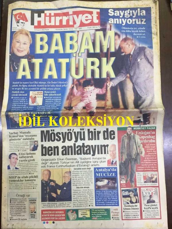 HÜRRİYET GAZETESİ - 10 KASIM 2002 - BABAM ATATÜRK, ATATÜRK'ÜN MANEVİ KIZI ÜLKÜ ADATEPE İLE ÖZEL RÖPORTAJ - RECEP TAYYİP ERDOĞAN'IN KOPENHAG GARDIROBU - ORGANİZATÖR ERKAN ÖZERMAN - OKTAY EKŞİ - FADIL AKGÜNDÜZ - SİBEL CAN - YELİZ YEŞİLMEN İŞSİZ KALDI - FORD FOCUS 2002 REKLAMI - YENER SÜSOY - FİAT ALBEA 2002 REKLAMI - MEHMET ŞENTÜRK - MONICA BELLUCI - PAKİZE SUDA - OSMAN DURMUŞ - ALİ ATIF BİR - ERCAN KUMCU - SÜHA YAVUZ - EBRU GÜNDEŞ - MELTEM CUMBUL, ŞEVKET GÖZALAN - BMW 325 İ 2002 REKLAMI - MALİ MİLAT - ALİ LEVENT ORHAN - ELÇİN ÜNER - DEVLETİN GAZABINDAN YENİÇERİNİN MEZARTAŞI BİLE KURTULAMAMIŞTI - MURAT BARDAKÇI - YALÇIN BAYER - RAHMİ DİLLİGİL - HYUNDAI STAREX 2002 REKLAMI - KAYIP KATRİN TÜRKİYE'DE Mİ? - FAİK KAPTAN - MESUT YILMAZ ''GERİ DÖNMEMEK ÜZERE GİDİYORUM'' - TANSU ÇİLLER - ERTUĞRUL ÖZKÖK - FERAİ TINÇ - KOFİ ANNAN - FERİDUN GÜRBÜZ VEFAT İLANI - HACI KEMAL TÜRER VEFAT İLANI - KENAN ŞENER VEFAT İLANI - M. NECMİ SAYMAN VEFAT İLANI - NAOMA - LORANT & FENERBAHÇE - 40 SAYFA adlı eser, Kitap > Süreli Yayınlar > Gazeteler > Türkiye > Genel kategorisinde İkinci El olarak satıştadır.