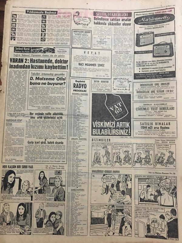 HÜRRİYET GAZETESİ 11 HAZİRAN 1968 YIL :19 SAYI :6506--Parlamento seçiminden sonra bahar havasına girdi ---Arazi için iki köy kavga etti altı kişi öldü ---Ortaca pazarı askeri tedbir altında kuruldu ---Günseli nihayet boşandı ---13 Yaşındaki ortaokul talebesi meçhul bir elin attığı kurşunla öldü ---1952 Avrupa Güzeli :Faruk Tınca ile tam 8 yıl aşksız bir hayat yaşadım diyor ---Tarsus ta kudurarak ölen genç ,etrafa dehşet saçtı ---Hırsız -polis oyununda tabancalar patladı ---Bekçiyi öldüren bir randevucu kadın dün idama mahkum oldu ----Belediyece satılan arsalar hakkında şikayetler oluyor ----Dünya da 10 çitçiden biri farelere çalışıyor ----Türk erkekleri Almanya da kadın katili oluyorlar ---Beşiktaş ,G.Birliği ---Gegiç dün Fenerbahçe kampını ziyaret etti ---Milli Güreş Takımlarımız Bugün Toledo ya Gidiyor ---İşletmeciler yatak sahneleri olmayan filmleri almıyor --Dünyanın en çirkin figüranları Türkiye de ---S.Göksel kendi şirketi adına yeni filmler yapıyor --- Yıpranma, sararmalar, kupon kesiği ve yırtılmalar zamana bağlı olarak görülebilir.