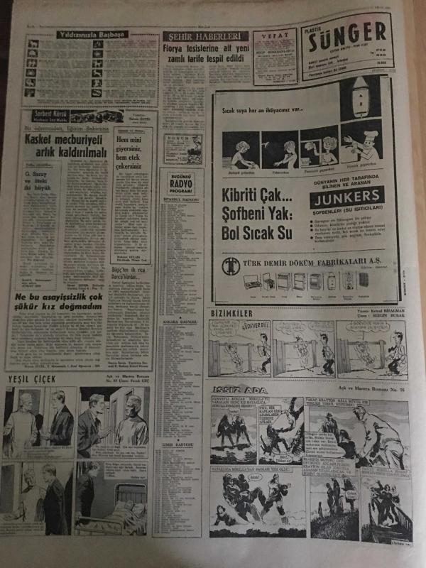 HÜRRİYET GAZETESİ 11 NİSAN 1967 YIL :19 SAYI :6805---Rumlarla Mücahitler Yine Çarpıştı ---Misyoner çift Türkiye de karanlık işler çevirmiş ---Gece kulüpleri cırtlak sesli artist Jayne Mansfield in işine son verdi ----Hamido ,oğlunu kaza ile öldüren gazeteciden davacı olmadı ---Beş kişi hamile kadını kaçırarak tecavüz etti ---Polis teşkilatının 122 . kurtuluş yılı kutlandı ---Florya tesislerine ait yeni zamlı tarife tespit edildi ---Tankerden akan petrol ,Fransa sahillerine indi ---Beşiktaş neden bocalıyor ?--Devler aynı hiza da ---Altaylılar :Beşiktaş büyük konuşmanın cezasını çekti ---Sunay ,Harikalar diyarında ---Moda da cesedi bulunan şahsın cinayete kurban gittiği sanılıyor ---Toto da 13 maçı iki kişi bildi ---Büyük Asker Mareşal Fevzi Çakmak Anıldı ---Sunay ı götüren helikopterin pilotu başkanla Türkçe konuştu --- adlı eser, Kitap > Süreli Yayınlar > Gazeteler > Türkiye > Genel > Günlük kategorisinde İkinci El olarak satıştadır.