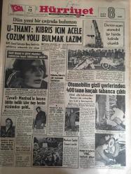HÜRRİYET GAZETESİ 12 ARALIK 1967 YIL :20 SAYI :7050---U-Thant : Kıbrıs için acele çözüm yolu bulmak lazım ---Zavallı Manfred in başına bütün belalı işler hep benim yüzümden geldi ---Otomobilin gizli yerlerinden 400 tane kaçak tabanca çıktı ---Memur işçilerin vergi muafiyeti artıyor ---Şehirlerin kirli havası bir insan için günde 200 tane sigara içmiş kadar zehirli ---50 Kiloluk mini otomobili ehliyetsizler bile kullanacak --Apartman gösterip çalılık satan şahıs ,3 kişiyi daha dolandırmış ---Göztepe şaşkına döndü --Yeten : Mağlubiyette hakemin rolü büyük dedi ---Fenerbahçe ve Beşiktaş ,145 er bin lira aldı ---Galatasaray ümidini çek antrenöre bağlandı ---Fenerbahçe Zonguldak a eksik kadro ile gidiyor --DİBA nın resmi tıpatıp Süreyya ya benziyor ---Samsun da cinayet işledikten 10 ay sonra Tophane de yakalanan katil unutmuşum dedi ---Merhum Sedat Simavi Anıldı ---Radyo Programları -- adlı eser, Kitap > Süreli Yayınlar > Gazeteler > Türkiye > Genel > Günlük kategorisinde İkinci El olarak satıştadır.