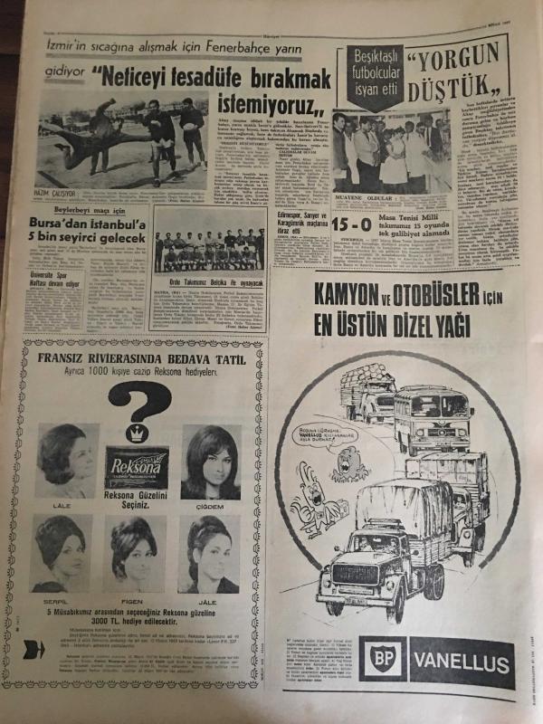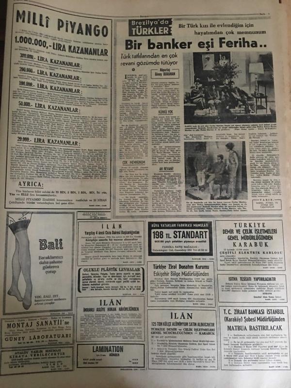HÜRRİYET GAZETESİ 13 NİSAN 1967 YIL :19 SAYI :6807--Cezasını kendi eliyle verdi ---Sunay ,yarın Türkiye ye hareket ediyor ---Murdar ırmağa taştı 200 dükkan su altında ----Permi satışı ve bu yol ile otomobil ithalatı önlenecek ---Üç İsrail 'li asker öldürüldü ---1967 nin tipi ,manken 1,5 dakikalık bir reklam programı için 100 bin lira aldı ----Hamido nun teslim olmasına köylüler üzüldü ---Emekli Albay Eşini Tabanca ile Öldürüp Kaçtı ---Kara sinekle mücadele edecek ekipler kuruldu ---420 bin dolar Kennedy Havaalanında Kayboldu --Neticeyi tesadüfe bırakmak istemiyoruz ---Bursa dan İstanbul a 5 bin seyirci gelecek ---Ergenlik sivilcesi 15 dakika da yok ediliyor ---Kamping Fuarında Türk Pavyonunu Gören Almanlar ,Türkiye ye Gelecek ---Cesar Romeo ,ak saçları ile televizyon yıldızı oldu ---Siirt te 230 firari var --- Yıpranma, sararmalar, kupon kesiği ve yırtılmalar zamana bağlı olarak görülebilir.