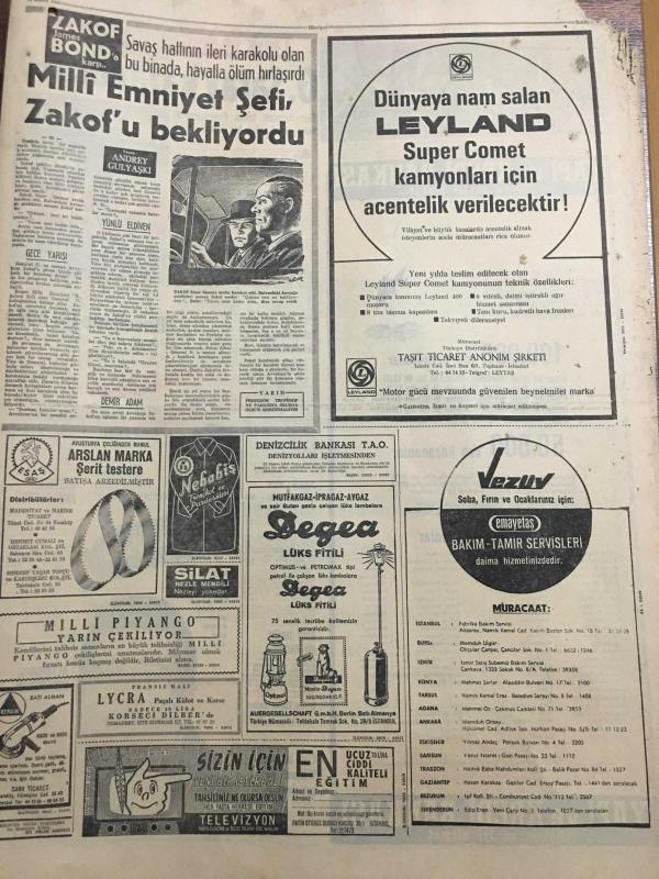 HÜRRİYET GAZETESİ 14 KASIM 1966 YIL :19 SAYI :6662--İsrail Birlikleri Dün Ürdün e Hücuma Geçti --Şaşı Osman ,Laz Muzo yu Öldürdü --Demirel :AP ,Milli Bütünlüğü Korumaya Azimlidir --Ekipler bu defa lüks yerlere de girdi ---Parasını alamayan kaçakçılar ev basıp eşyalarını aldılar --Vatandaş Devlet kapısında zorluk çekemeyecek --Eski mermi patladı ve dört çocuk yaralandı ---İpnotizma ile herkes büyük bir sanatkar olabilirmiş --Galatasaray kazandı :2-0 --Hacettepe 1-0 galip ---Göztepe :3 Ankaragücü :0--Altınordu :1 Demirspor :1--Clay bu gece Williams ile karşılaşıyor --199 . randevu da Galatasaray kazandı --Yunanistan da ASPİDA ya mensup subaylar yargılanıyor ---Erkekler maça gittiği için Demirel i kadınlar karşıladı --Parasını alamayan kaçakçılar ,ev basıp eşyaları aldı ---Yeşilhisar da talebesine sarkıntılıkta bulunan öğretmen linç ediliyordu ---, SEDAT SİMAVİ tarafından kaleme alınmıştır. Kitap 1966 yılında [HÜRRİYET MATBAA] yayınlanmıştır. 8 sayfadır. HÜRRİYET GAZETESİ 14 KASIM 1966 YIL :19 SAYI :6662--İsrail Birlikleri Dün Ürdün e Hücuma Geçti --Şaşı Osman ,Laz Muzo yu Öldürdü --Demirel :AP ,Milli Bütünlüğü Korumaya Azimlidir --Ekipler bu defa lüks yerlere de girdi ---Parasını alamayan kaçakçılar ev basıp eşyalarını aldılar --Vatandaş Devlet kapısında zorluk çekemeyecek --Eski mermi patladı ve dört çocuk yaralandı ---İpnotizma ile herkes büyük bir sanatkar olabilirmiş --Galatasaray kazandı :2-0 --Hacettepe 1-0 galip ---Göztepe :3 Ankaragücü :0--Altınordu :1 Demirspor :1--Clay bu gece Williams ile karşılaşıyor --199 . randevu da Galatasaray kazandı --Yunanistan da ASPİDA ya mensup subaylar yargılanıyor ---Erkekler maça gittiği için Demirel i kadınlar karşıladı --Parasını alamayan kaçakçılar ,ev basıp eşyaları aldı ---Yeşilhisar da talebesine sarkıntılıkta bulunan öğretmen linç ediliyordu --- adlı eser Türkçe dilindedir.