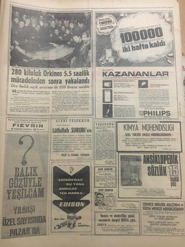 HÜRRİYET GAZETESİ 17 ARALIK 1967 YIL :20 SAYI :7055---General Patakos :Taht Kralındır İsterse yine dönebilir dedi ---Yunanistan kraliçesi bebek bekliyor --Kızlara sarkıntılık eden Ringo Süheyl in saçları karakolda dipten kesildi ---Eralp :Biz güvenlik konseyinden Kıbrıs ta barışı sağlayacak açık bir karar istiyoruz dedi ---Önümüzdeki sene Almanya ya işçi sevkiyatı üç misli artacak ---Torpilimiz olmadığı için başka bir iş bulamadık ---Kaçakçılardan rüşvet alan iki jandarma askeri heyete ateş açtı ---Şöhret hepsini şımarık bir varlık haline getirmiş --Sigara kadınları çirkinleştiriyor --Rusya da 50 kilo altın çalan bir maden mühendisi idam edildi --280 kiloluk Orkinos 5.5 saatlik mücadeleden sonra yakalandı --Göztepe iyice çöktü --Beşiktaş zor kazandı :1-0 --Fenerbahçe -H.Tepe A.Gücü-Galatasaray ---Demirspor :3 -Mersin :1 ---Cunta dün Metropolit Yeronimos u Roma ya gönderdi --Cezayir de ki darbe teşebbüsünde birçok kişi öldü ---Bir asma köprü 75 vasıta ile çöktü ,5 ölü 21 kayıp, SEDAT SİMAVİ tarafından kaleme alınmıştır. Kitap 1965 yılında [HÜRRİYET MATBAA] yayınlanmıştır. 12 sayfadır. HÜRRİYET GAZETESİ 17 ARALIK 1967 YIL :20 SAYI :7055---General Patakos :Taht Kralındır İsterse yine dönebilir dedi ---Yunanistan kraliçesi bebek bekliyor --Kızlara sarkıntılık eden Ringo Süheyl in saçları karakolda dipten kesildi ---Eralp :Biz güvenlik konseyinden Kıbrıs ta barışı sağlayacak açık bir karar istiyoruz dedi ---Önümüzdeki sene Almanya ya işçi sevkiyatı üç misli artacak ---Torpilimiz olmadığı için başka bir iş bulamadık ---Kaçakçılardan rüşvet alan iki jandarma askeri heyete ateş açtı ---Şöhret hepsini şımarık bir varlık haline getirmiş --Sigara kadınları çirkinleştiriyor --Rusya da 50 kilo altın çalan bir maden mühendisi idam edildi --280 kiloluk Orkinos 5.5 saatlik mücadeleden sonra yakalandı --Göztepe iyice çöktü --Beşiktaş zor kazandı :1-0 --Fenerbahçe -H.Tepe A.Gücü-Galatasaray ---Demirspor :3 -Mersin :1 ---Cunta dün Metropolit Yeronimos u Roma ya gönderdi --Cezayir de ki darbe teşebbüsünde birçok kişi öldü ---Bir asma köprü 75 vasıta ile çöktü ,5 ölü 21 kayıp adlı eser Türkçe dilindedir.