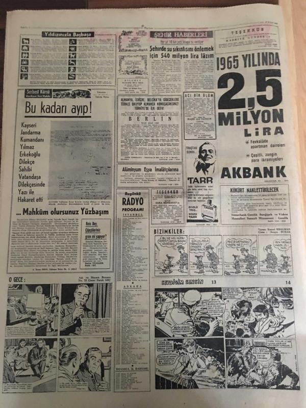 HÜRRİYET GAZETESİ 18 ŞUBAT 1965 YIL :17 SAYI :6036--AP lideri Demirel Başbakan Yardımcısı Oluyor --Salihli ,Allah ın gazabına uğradı ---Ürgüplü Türkiye nin 15 .Başbakanı ---Bu işi neticelendirmek için kendini helak eder ---Anadolu da antika eşya arayan Alman genci bir köylü kıza aşık oldu --Ürgüplü nün eşi ne çok dostumuz varmış dedi ----Şehir su sıkıntısını önlemek için 540 milyon lira lazım --Türkiye turistlerin istilasına uğrayacak ---İtalya liginde futbol faciası ---Ordu Takımımız İran 'ı 1-0 yendi --Fenerbahçe İzmir takımlarından değil ,hakemlerden korkuyor ---Galatasaray Ankara ya gitti ---Milli Takım Kadrosu Martta Açıklanacak ---Lefter in tabiiyet değiştirmesi için de gizli faaliyet gösteriliyor ---Ürgüplü nün Albümünden -- adlı eser, Kitap > Süreli Yayınlar > Gazeteler > Türkiye > Genel > Günlük kategorisinde İkinci El olarak satıştadır.