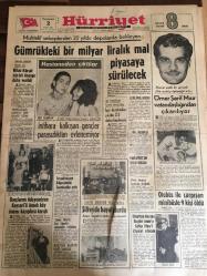 HÜRRİYET GAZETESİ 2 EYLÜL 1967 YIL :20 SAYI :6949---Gümrükteki bir milyar liralık mal piyasaya sürülecek ---Nihat Kürşat için bir önerge daha verildi --İntihara kalkışan gençler parasızlıktan evlenemiyor ---İşçi ücretinden yüzde 2.5 daha kesilecek ---Ömer Şerif Mısır Vatandaşlığından Çıkarılıyor ---Borçlarını ödemeyen Kayserili örnek köy imamı kayıplara karıştı ---Sosyalizasyon bölgesindeki tazminatlar arttı ---Silivri de hayat durdu ----Makarios un kolu kırıldı ---Otobüs ile çarpışan minibüste 9 kişi öldü ---Charlton Heston Bugün İzmir e Gelip Efes i Ziyaret Edecek ----Pakistan da hiç bir memur izinsiz toprak ,bina ve tahvil alamayacak --- Dünya çapındaki temsilcimiz ,sanat tahtının tek kralı :Zeki Müren , her akşam fuar Manolya Bahçesinde ve Ajda Pekkan ,Sevim Tuna Ateş Böcekleri ,Ümit Şener -- Grekoromen Şampiyonası Başladı :4 Galibiyet ,2 Mağlubiyet ---Savarona 36 Yaşında ---Sosyalizasyon Bölgesindeki Tazminatlar Arttı ---